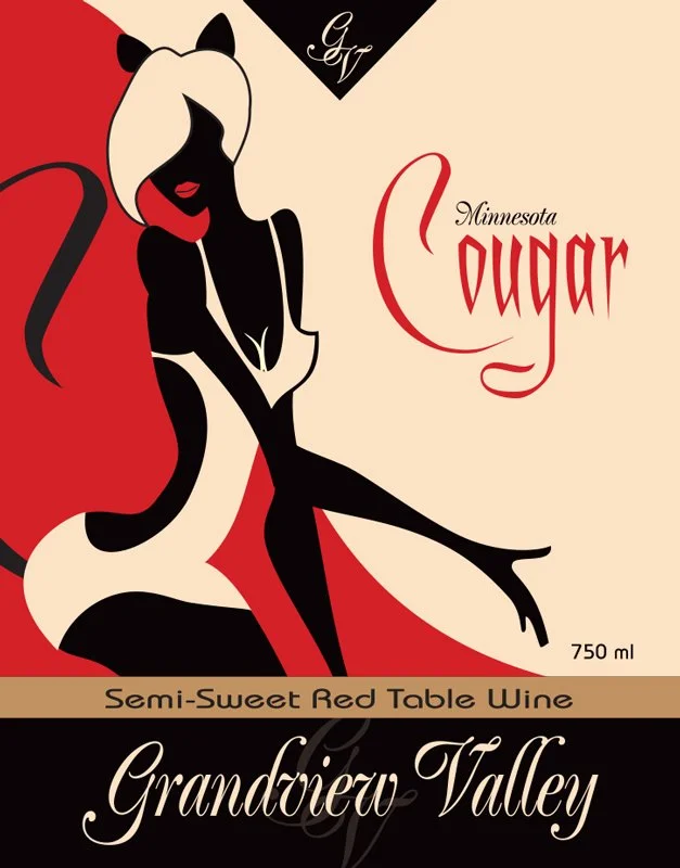 Inspired by not only the predator cat that stalks the banks of the Minnesota River Valley but also dedicated to a certain female population frequenting Grandview Valley Winery, Cougar is a sweet and sassy red wine made from the Marquette grape with a rich dark berry quality.